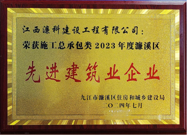 日前,在九江市濂溪区“先进建筑业企业”评选活动中,我司子公司江西濂科建设工程有限公司荣获施工总承包类2023年度濂溪区“先进建筑业企业”称号。